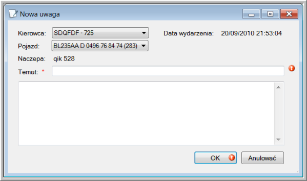 Dodane uwagi są widoczne w zakładce „Uwagi”, gdzie mogą być one opracowywane, edytowane i usuwane przez innych użytkowników prowadzących obserwację danego pojazdu.