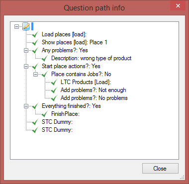Jeśli ścieżka pytań jest dostępna dla danej czynności, ikona ścieżki pytań będzie wyświetlona w kolumnie Informacje o ścieżce pytań: