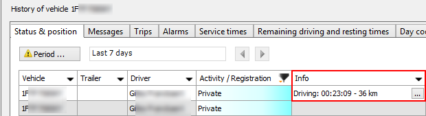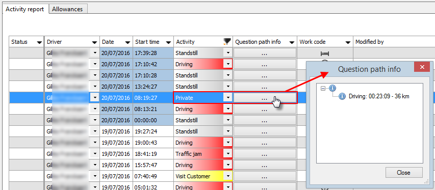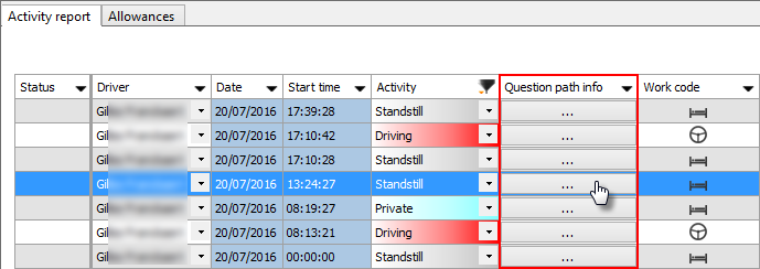 Rzeczywisty czas jazdy i odległość takiej czynności można przejrzeć w informacjach o ścieżce pytań (w Obserwacji pojazdu lub Zarządzaniu raportami dotyczącymi czynności):