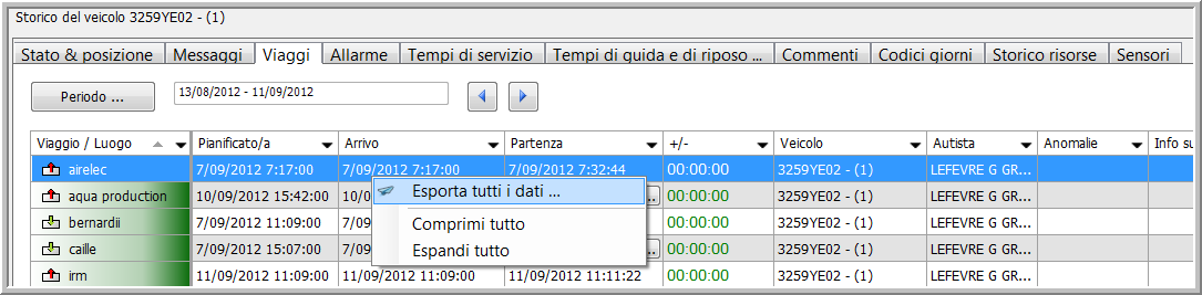 Karta Trasy zawiera przegląd tras i miejsc przypisanych do wybranego pojazdu podczas określonego okresu czasu.
