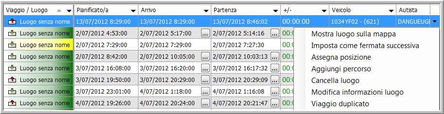 W zależności od wybranej pozycji (trasa / miejsce / produkt), w ostatniej kolumnie może być dostępnych kilka opcji: