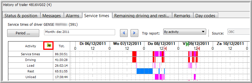 Gdy dostępne są kody dnia, w lewym górnym rogu zakładki „Czasy serwisu” wyświetlona zostanie ikona. Daty, dla których dostępne są kody, zostaną wyróżnione tłustym drukiem. Kliknij ikonę, aby przejść bezpośrednio do zakładki „Kody dnia” i właściwego okresu.