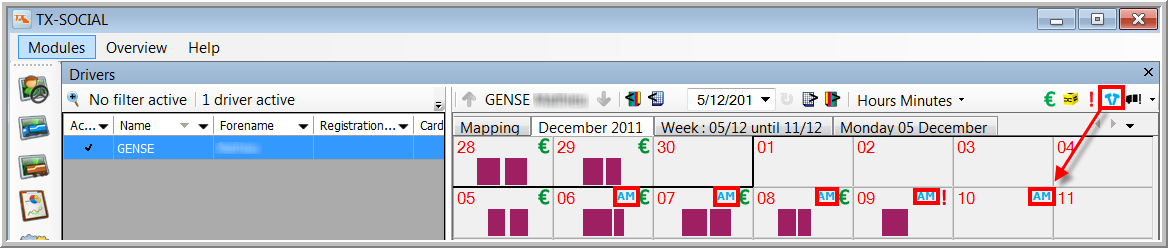 Klienci TX-SOCIAL mogą również wyświetlić kody dnia TX-SOCIAL w TX-CONNECT. W modułach „Obserwacja kierowcy” i „Obserwacja pojazdu” dostępna jest teraz zakładka „Kody dnia”. Tych danych nie można edytować w TX-CONNECT.