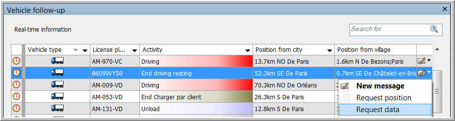 W części Informacje w czasie rzeczywistym modułu „Obserwacja pojazdu” można poprosić o dane FTP swoich pojazdów. Po kliknięciu przycisku Wniosek o dane, do komputera pokładowego zastanie wysłana wiadomość systemowa. Dane FTP przechowywane w komputerze pokładowym zostaną natychmiast pobrane, a odpowiednie informacje zostaną zaktualizowane.