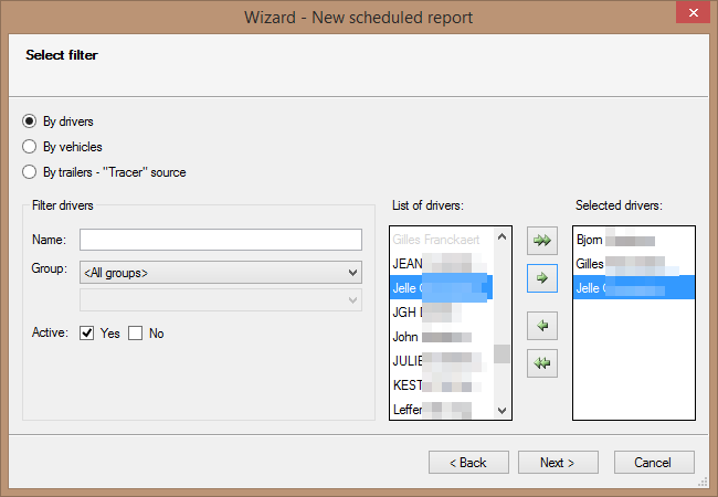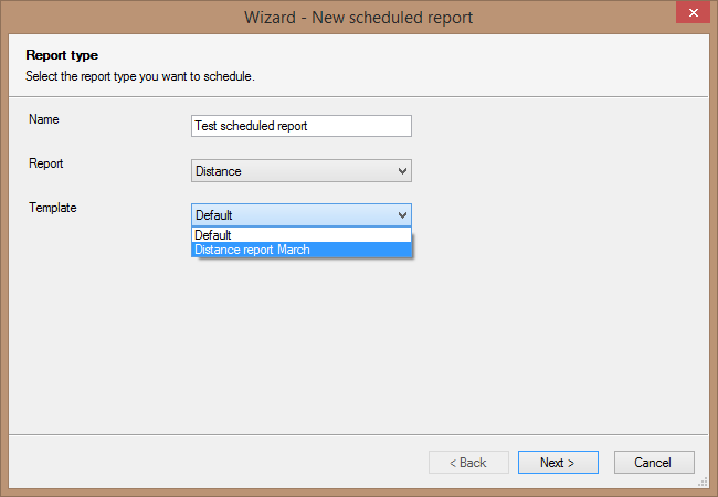 Najpierw wybierz typ raportu i szablon. Wprowadź nazwę raportu. Np. Raport dotyczący przejechanej odległości – marzec