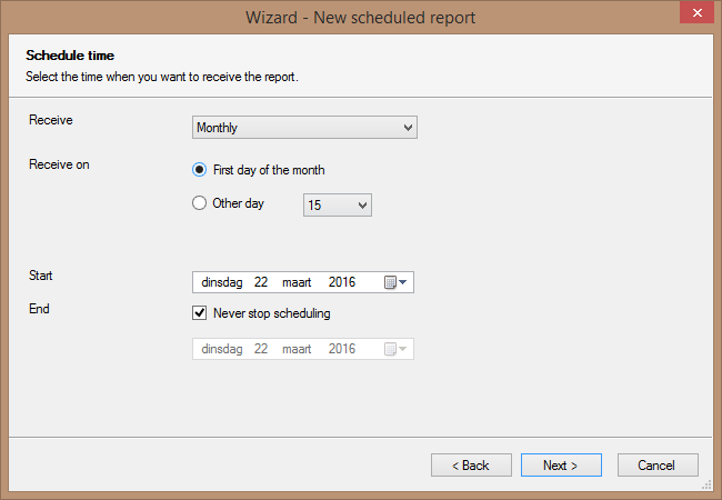 Kreator poprowadzi użytkownika przez wszystkie kroki tworzenia zaplanowanego raportu.
