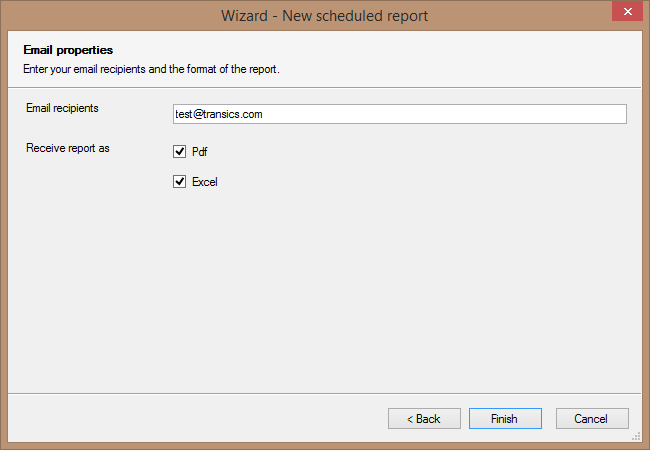 Kliknij przycisk „Zakończ”, aby utworzyć zaplanowany raport. Raport będzie wysyłany na skrzynkę pocztową użytkownika w wyznaczonych terminach.