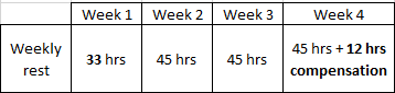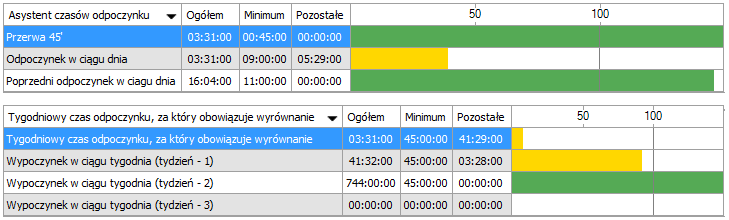 Wypoczynek w ciągu tygodnia (min. 24 godz. - 45 godz.) |