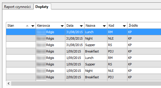 Dwukrotnie kliknij wiersz, aby wyświetlić szczegółowe informacje na temat dodatku: