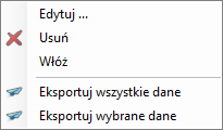 Użytkownicy nie mogą edytować dodatków. Możesz jedynie wstawić nowy lub usunąć istniejący dodatek. Kliknięcie prawym przyciskiem myszy jednego z wierszy spowoduje wyświetlenie następujących opcji:
