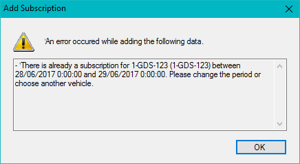Uwaga: Można tylko dodać 1 subskrypcję dla pojazdu / naczepy w jednym okresie. |