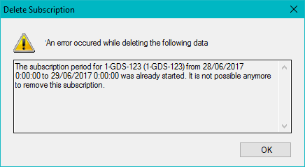 Uwaga: Można tylko usunąć subskrypcję, która nie została rozpoczęta. Nie można usunąć subskrypcji, które już się rozpoczęły lub zakończyły. |