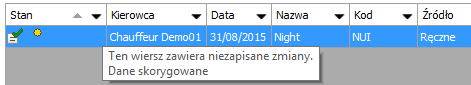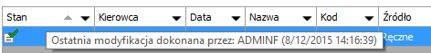 Pierwsza kolumna tabeli (kolumna Stan) zawiera wskaźniki stanu, które zawierają określony komunikat dla wiersza informacji. Poniżej wymieniono możliwe wskaźniki: