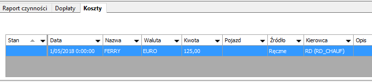 Kliknij dwukrotnie wiersz, aby wyświetlić szczegółowe informacje o koszcie: