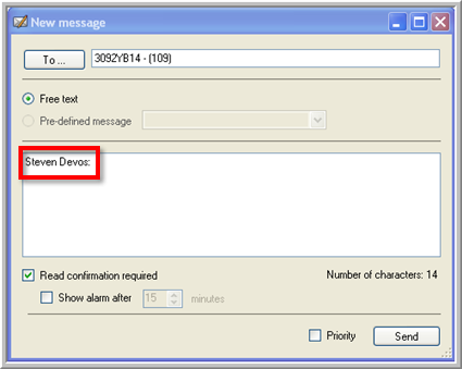 Kiedy wysyłasz nową wiadomość do pojazdu, nazwa twojego użytkownika zostanie dodana na początku wiadomości.