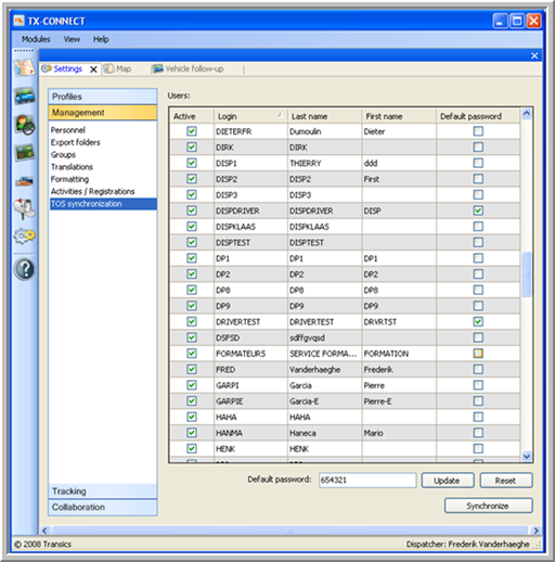 Ta opcja umożliwia administratorowi oraz właścicielowi floty skopiowanie użytkowników TOS do aplikacji TX-CONNECT.
