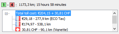 Uwaga: Fragmenty trasy, za które naliczana jest opłata, są zaznaczone na czerwono w funkcji obliczania trasy. Ustaw kursor na fragmencie trasy, aby wyświetlić wysokość opłaty, jaka będzie naliczona za przejazd na tym odcinku.