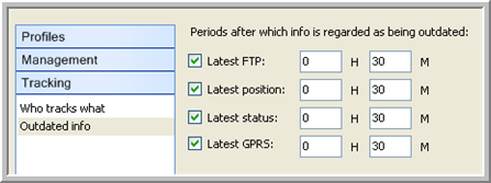 When the information is outdated, the data of the ticked check boxes will be displayed in red in the "Vehicle follow-up" window and the out-of-date status indicator