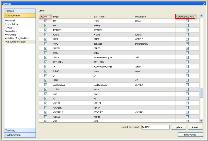Successful synchronization. Please inform the users with the 'Default password' that they can now log in to TX-CONNECT with their user code and password 'xxxx'.