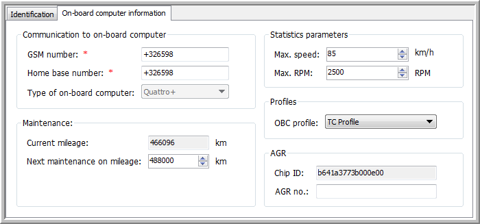 This is a unique identification number that is linked to the AGR No. This "ID" number is automatically filled in after the configuration of the on-board computer. |