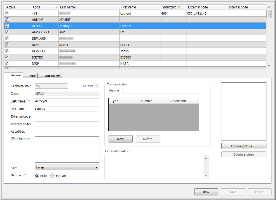 If you select a user in the grid (upper part), you will see the following information in the General tab page: