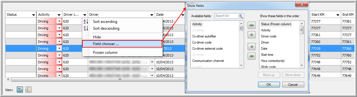 Ouvrez la Sélection de champs pour choisir l'information à afficher et la façon de son affichage: