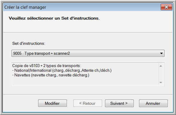 Sélectionnez le set d'instructions approprié. Si nécessaire, vous pouvez modifier la description du set d'instructions ou ajouter une remarque, en cliquant sur le bouton Modifier.