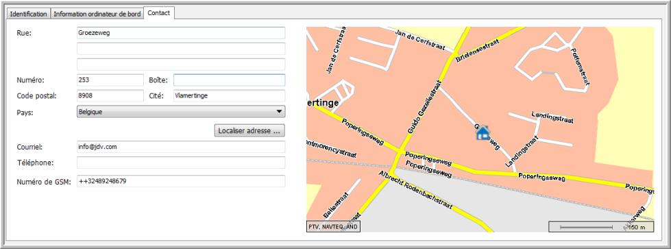 Cet onglet contient les coordonnées du chauffeur.