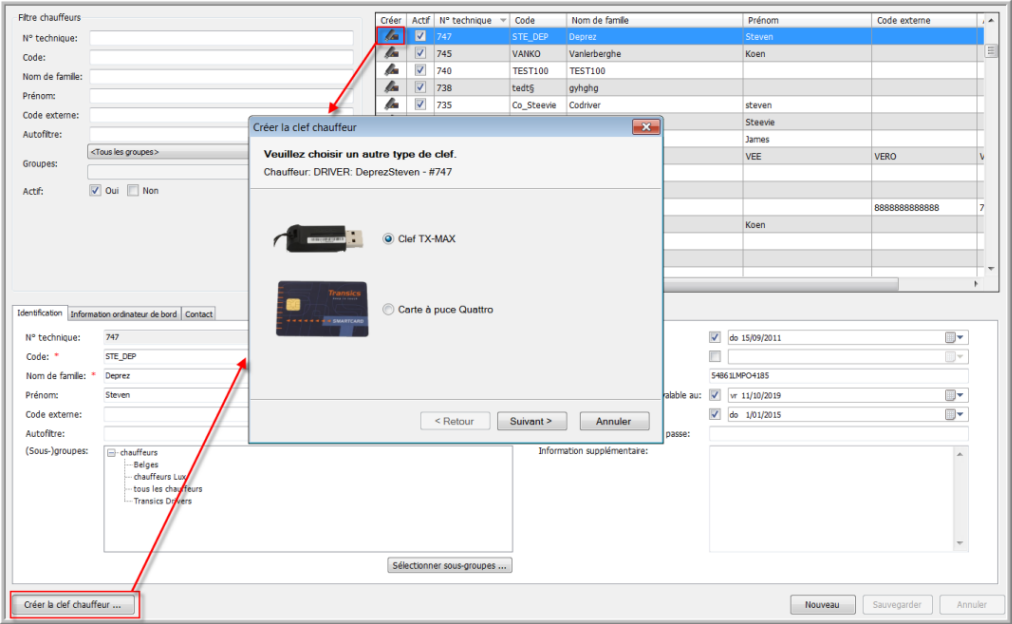 CRÉER CLEF CHAUFFEUR |