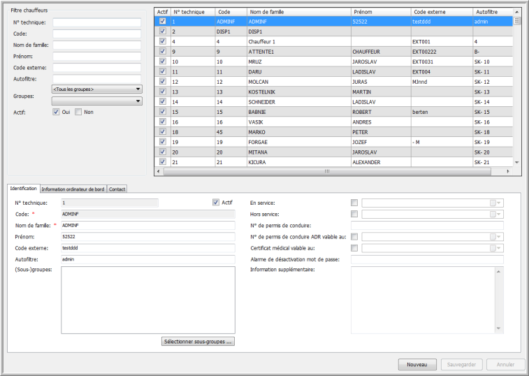 La zone en haut à gauche contient le "Filtre chauffeurs".