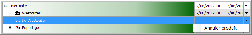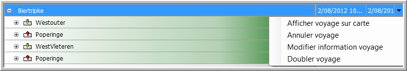Dépendant de l'élément sélectionné (un voyage / un lieu / un produit), plusieurs options sont disponibles dans la dernière colonne :