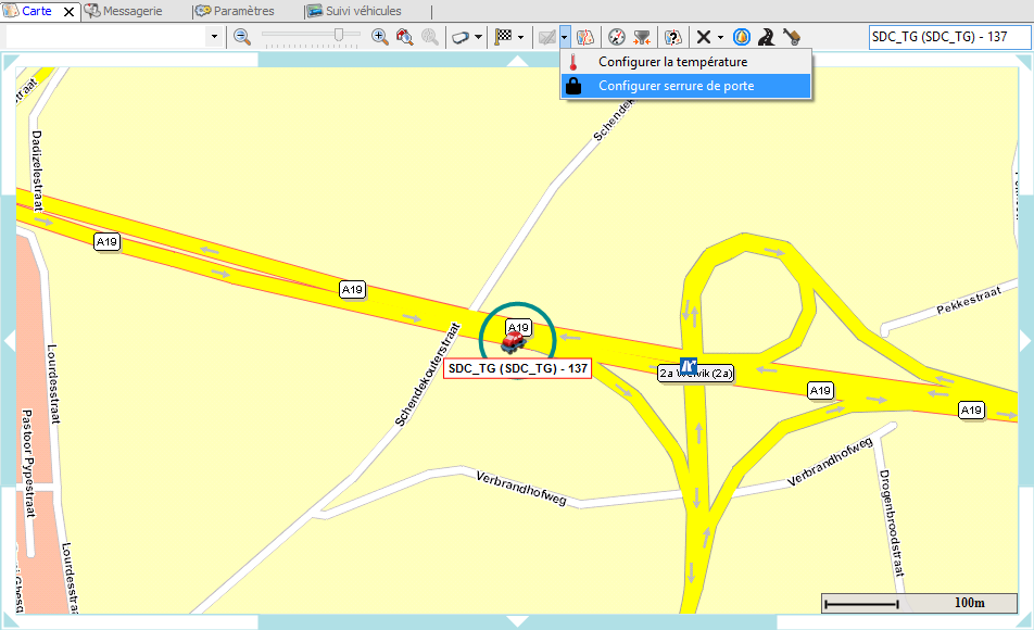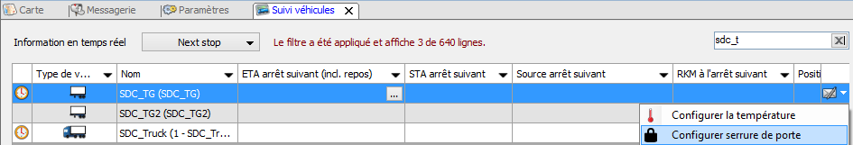 Pour configurer à distance la serrure de porte, une option est ajoutée dans Suivi véhicules - Information en temps réel et dans le module Carte.