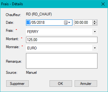 Entrer : Ajouter un frais manuellement.
