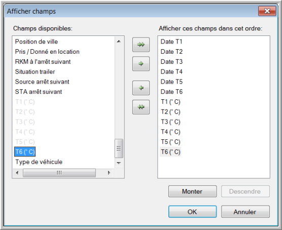 Le module de "Suivi véhicules" contient 12 nouvelles colonnes avec de l'information sur les 6 zones de température pour le véhicule.