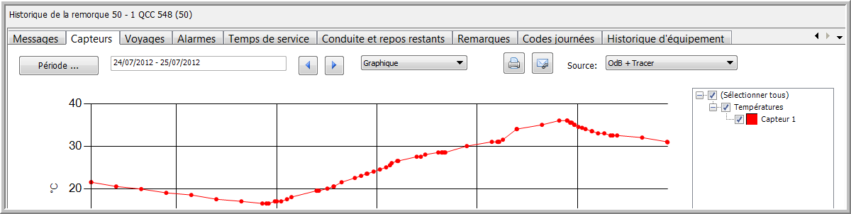 Dans l'onglet "Capteurs", l'info de la température (et d'autre info capteurs) de la remorque sélectionnée sera affichée, selon la source de données choisie :