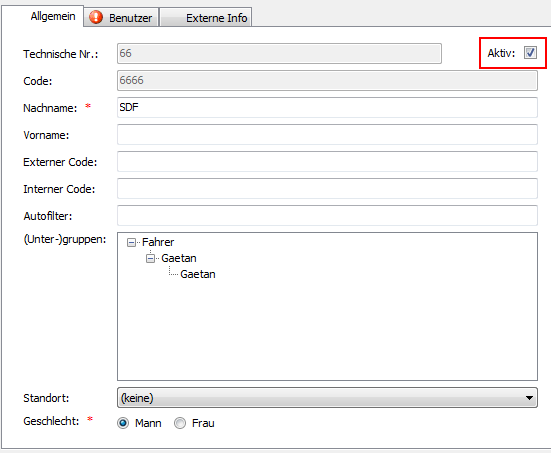 Im Fenster "Benutzermanagement" können Sie Benutzer deaktivieren. Wenn ein Benutzer nicht aktiv ist, darf er/sie TX-CONNECT nicht starten. Wenn ein Benuter in TX-CONNECT angemeldet ist und deaktiviert wird, wird eine Meldung gegeben, wenn der Benutzer sich das nächste Mal anmeldet.