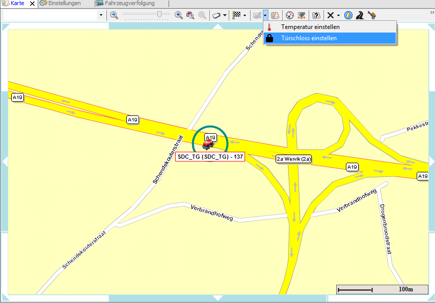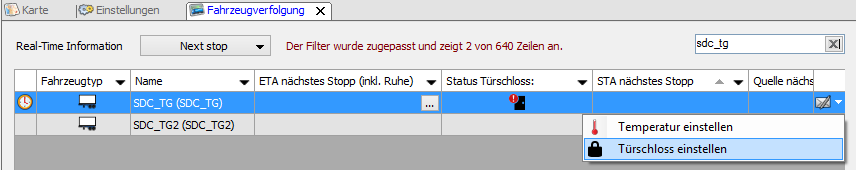 Zur entfernten Konfiguration des Türschlosses wurde eine Option in Fahrzeugverfolgung - Echtzeitinformationen und dem Kartenmodul hinzugefügt.