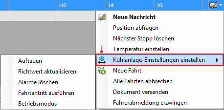 Wenn aktiv, gibt es eine zusätzliche Option in "Fahrzeugverfolgung" - "Real-Time Information" oder im "Karten"modul > Kühlanlage einstellen.