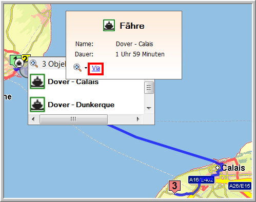 Bei der Berechnung einer Route wählen Sie die Fähre