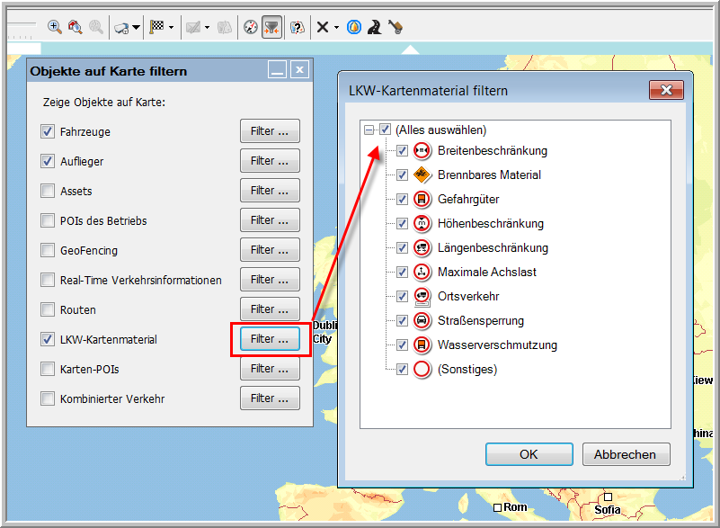 LKW-Einstellungen (Parameter für die Routeberechnung) |