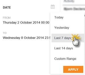 Click a predefined period (Today, Yesterday, Last 7 days or Last 14 days) |